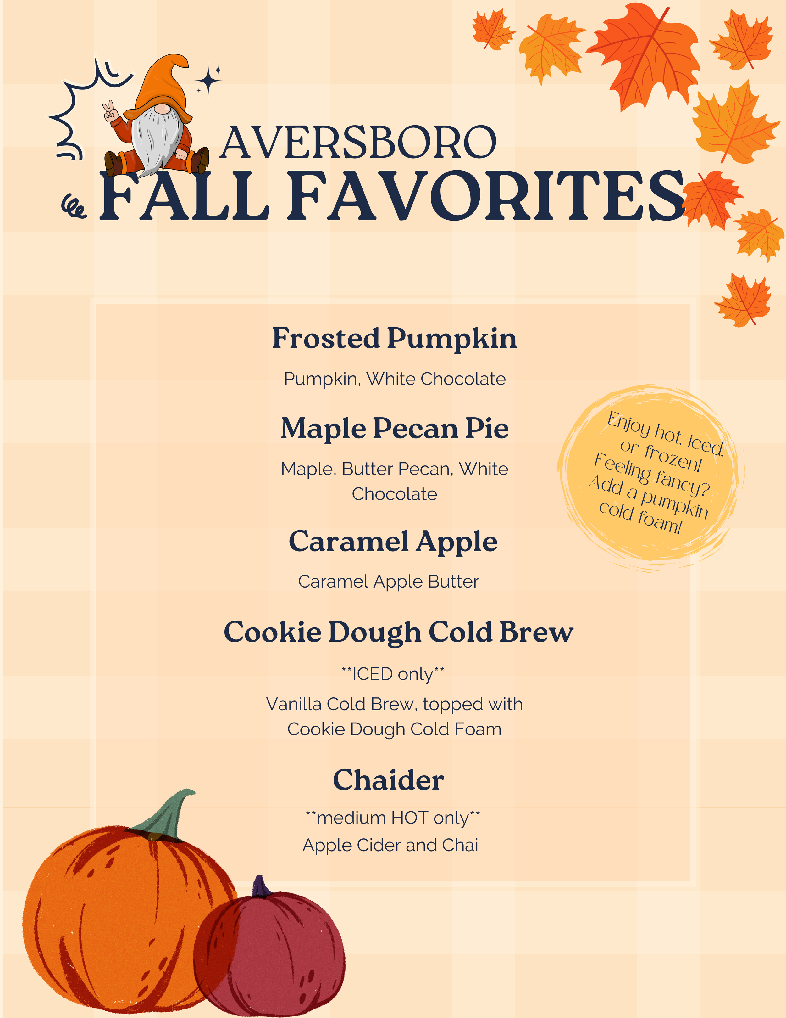 Fall menu for Aversboro Coffee shop: created with Canva