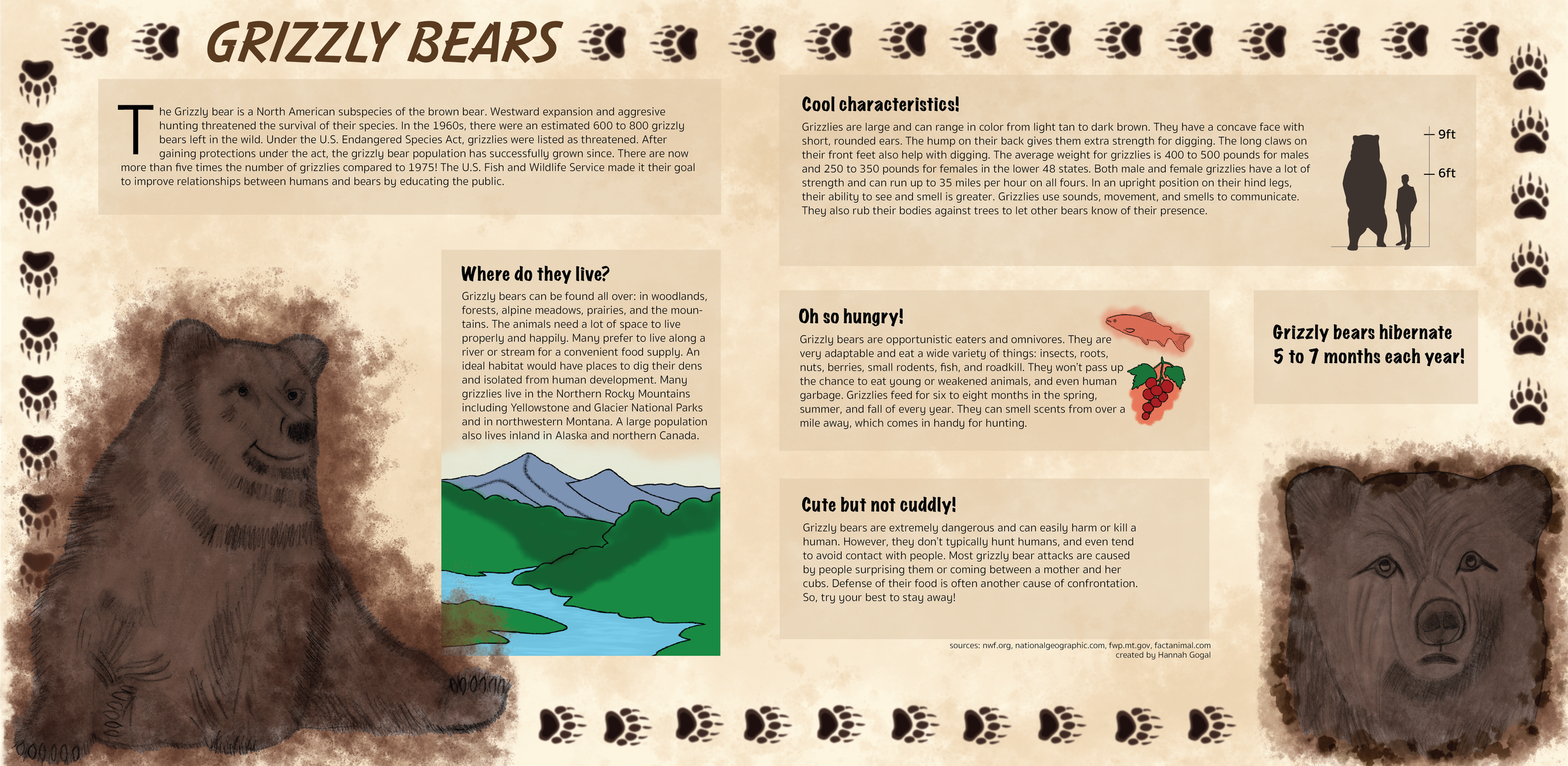 Fall 2023 grizzly bears infographic: worked with hand-drawn designs, Procreate, and Adobe Illustrator